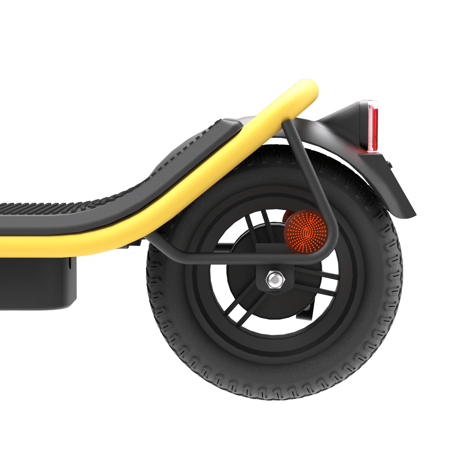 The 10-inch tubeless off-road tires ensure superior traction and stability on various terrains, making it perfect for adventurous rides. It also boasts dual drum brakes (front and rear) for enhanced safety, along with a water resistance rating of IPX4, ensuring the scooter performs well in various weather conditions.