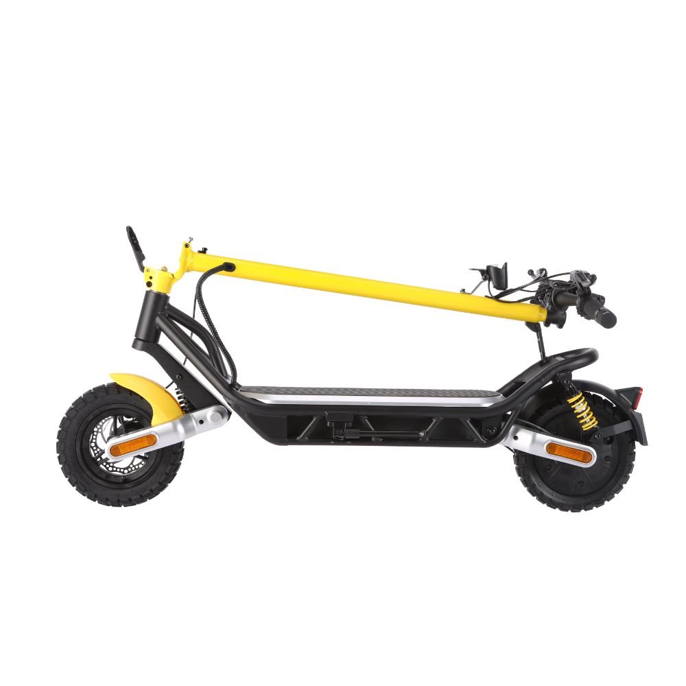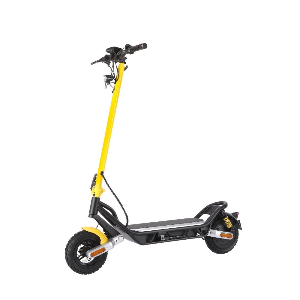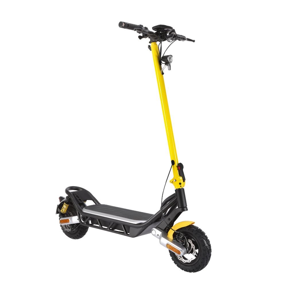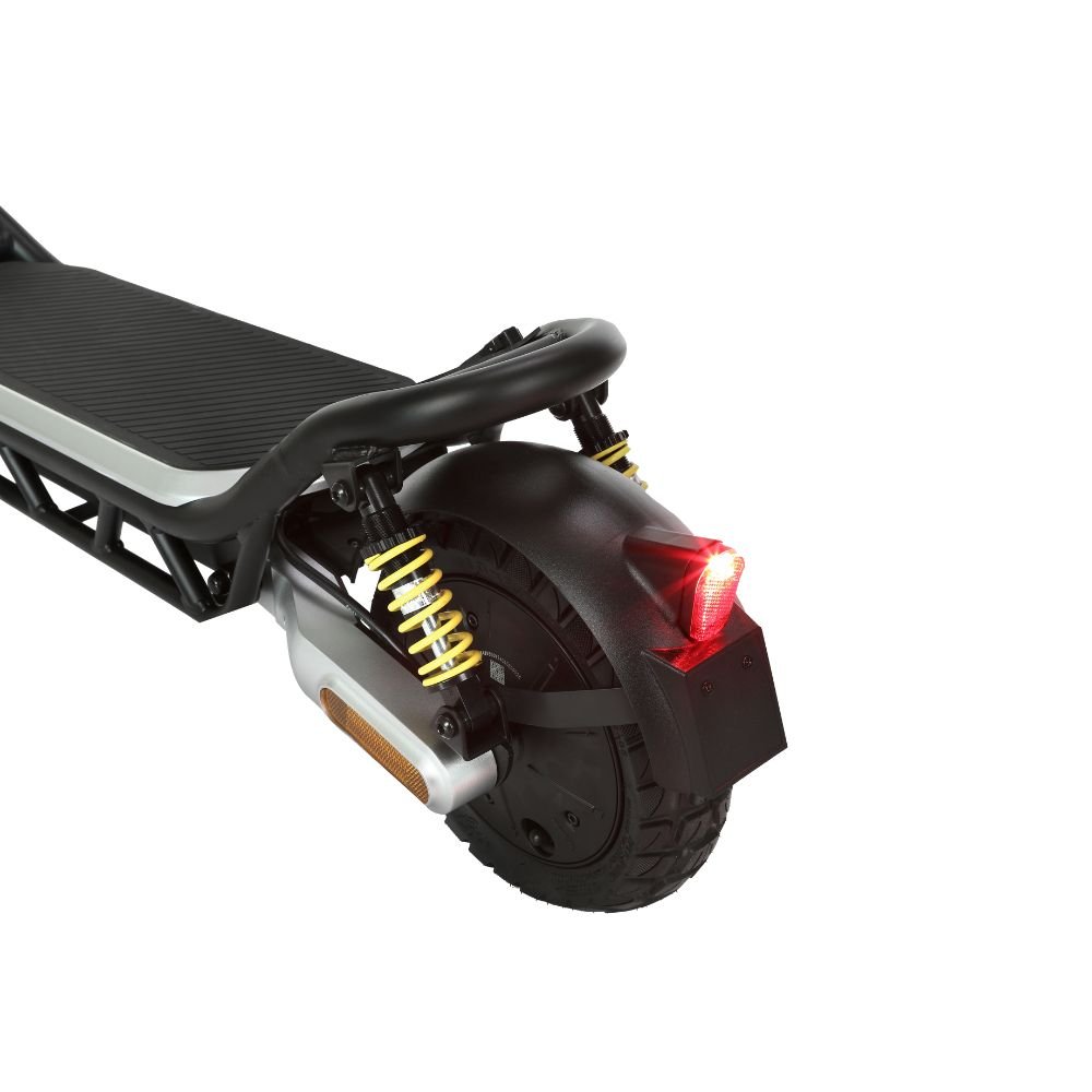 Conquer every ride with confidence on the AF-ESL05 Electric Scooter, a high-performance model built for power, comfort, and all-terrain versatility. Equipped with a powerful 1000W brushless motor (rated at 500W) and a robust 624Wh (48V 13Ah) battery, it delivers a range of up to 45 km and a top speed of 25 km/h in compliance with RTA/local regulations—unlockable to 40 km/h for private use. Built with a durable combination of aluminum and steel, the AF-ESL05 features 10-inch tubeless off-road tires, dual disc brakes, and front and rear suspension, making it ideal for urban commutes and rugged terrains alike. The IPX5 water resistance rating ensures reliability in various weather conditions, while turning signals, a bright front LED light, blinking rear tail light, full-body reflectors, and an electronic horn enhance safety and visibility. Riders benefit from 3 speed modes, a digital display showing speed, battery, and gear mode, and a responsive thumb throttle for seamless control. Foldable for convenience and weighing 26 kg (net), this scooter combines strength, smart features, and striking design for those who demand more from their ride. Perfect for daily adventurers and off-road explorers alike.